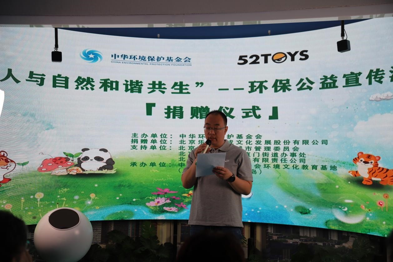 捐赠仪式上,北京乐自天成文化发展股份有限公司副总裁柏洁代表企业向我会捐赠了价值五十四万余元的盲盒,用于开展垃圾分类宣传活动。