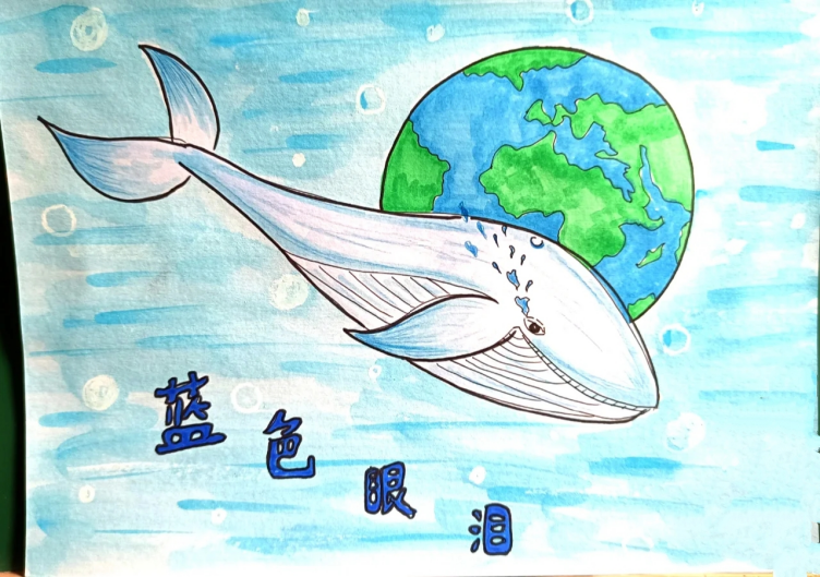 在这次课程中,王鑫蕊小朋友不仅学到海洋生物的多样性,更了解到了我们的海洋面临着很大的危机,通过描绘蓝鲸的眼泪表达出海洋动物面临着生态危机。