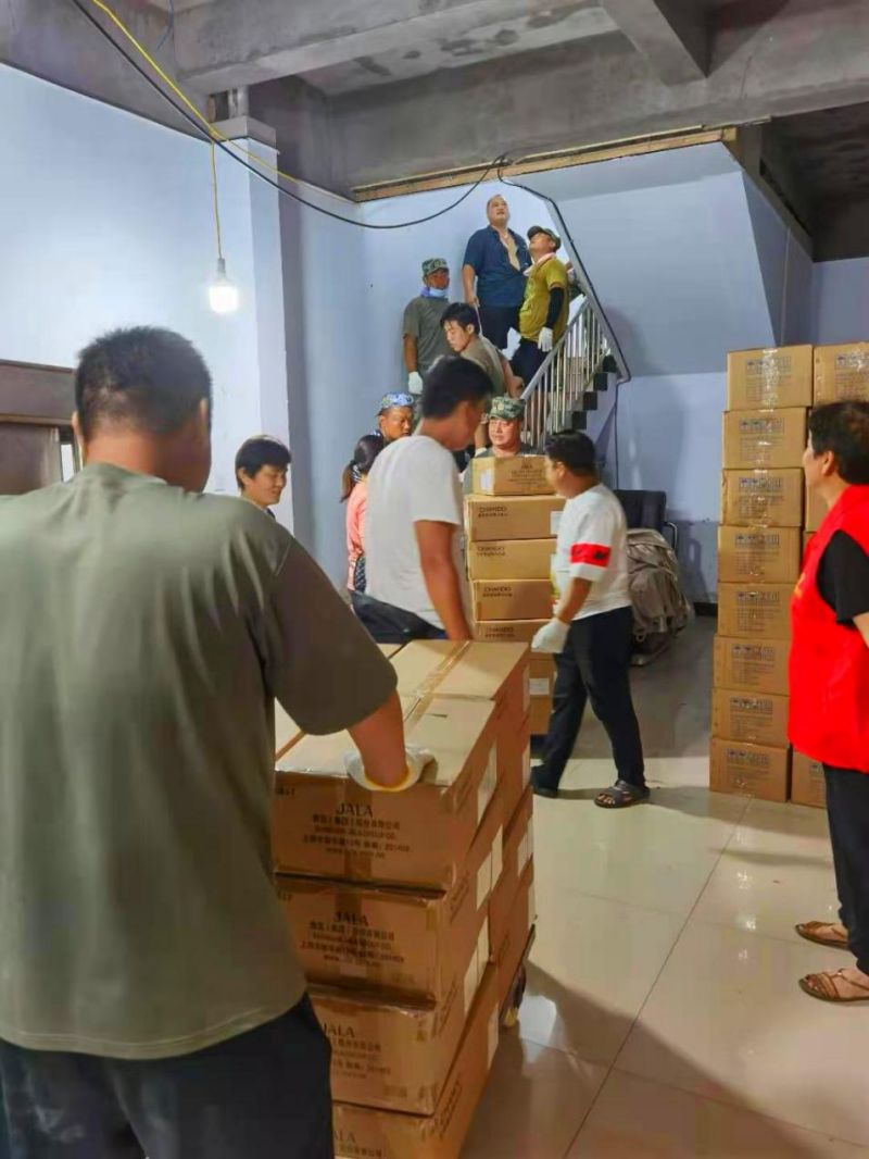 捐助行动也得到了当地民众的支持,帮助装卸的志愿者自觉聚拢过来,由最初的20余人逐渐汇聚成60余人,他们中有退役军人、有公务员、有热心居民,甚至有过路商贩。一名胳膊受伤打着钢板的退役军人大姐,由于伤情不能用力,她就给大家喊着号子,鼓着劲儿,大家就在这一波一波的号子声里,尽情挥洒着汗水把物资从卡车传递式运至一层二层的仓库,正如捐赠方志愿者感慨的那样“love is from me to you”-“爱是从我到你的传递”,正是每个人的积极行动和付出,让灾难之后我们的家园得以迅速重建和恢复。